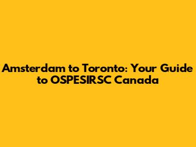 Amsterdam To Toronto: Your Guide To OSPESIRSC Canada