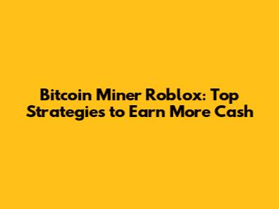 Bitcoin Miner Roblox: Top Strategies To Earn More Cash