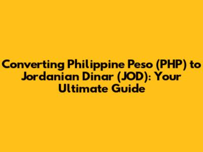 Hey everyone! Ever wondered about converting Philippine Peso (PHP) to Jordanian Dinar (JOD)? Maybe you're planning a trip, sending money, or just curious about the exchange rates. Well, you've come to the right place! This guide breaks down everything you need to know about the PHP to JOD conversion, making it super easy to understand. We'll cover the basics, the key factors affecting exchange rates, the best ways to convert your money, and some handy tips to get the most out of your transactions. Let's dive in and demystify the process of converting your PHP into JOD! Remember, the world of currency exchange can seem a bit complex at first, but with the right knowledge, you can navigate it like a pro. Whether you're a seasoned traveler or a first-timer, this guide is designed to help you make informed decisions and get the best value for your money. So, grab a coffee (or your drink of choice), and let's get started. By the end of this guide, you'll be well-equipped to handle your PHP to JOD conversions with confidence. We will cover various aspects, from understanding the exchange rate to choosing the most suitable conversion method, so you are fully prepared to deal with Philippine Peso to Jordanian Dinar exchange. Are you ready to convert some money? Let's go!