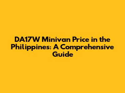DA17W Minivan Price In The Philippines: A Comprehensive Guide