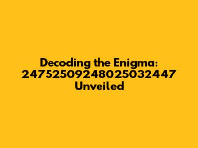 \Hey guys! Ever stumbled upon something so cryptic it feels like staring into the abyss? Well, buckle up because today we're diving deep into the mystifying number sequence: 24752509248025032447. This isn't just a random string of digits; it’s a puzzle, a potential key, or maybe just a cosmic coincidence. Whatever it is, let's break it down and see if we can unravel its secrets. Numbers, in general, hold immense significance in various fields, from mathematics and computer science to cryptography and even spirituality. The sequence 24752509248025032447 might represent a specific code, an identifier, a measurement, or a unique key in a larger system. Our mission? To explore the possible interpretations and significance of this enigmatic number. So, grab your thinking caps and let’s get started!