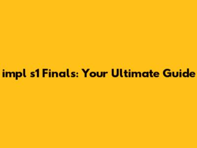 Impl S1 Finals: Your Ultimate Guide