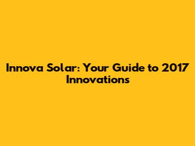 Innova Solar: Your Guide To 2017 Innovations