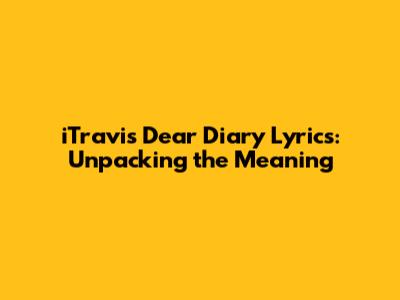 Hey guys! Today, we're diving deep into the lyrical world of iTravis's track, "Dear Diary." You know, sometimes a song just hits different, and this one feels like a personal journal entry set to music. We're going to break down what iTravis is really saying, exploring the emotions, the stories, and the overall vibe of this tune. So, grab your headphones, settle in, and let's unpack these lyrics together. It's not just about the words; it's about the feelings they evoke and the messages they carry. Get ready to connect with "Dear Diary" on a whole new level.