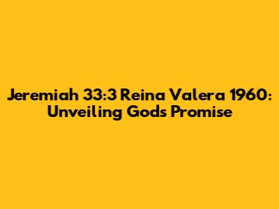 Hey guys! Today, we're diving deep into a powerful verse from the Bible: Jeremiah 33:3 in the Reina Valera 1960 version. This verse is packed with meaning and offers incredible encouragement. We will explore this scripture, dissecting its essence, understanding its context, and discovering its profound implications for our lives. So, let's get started and unlock the treasures hidden within Jeremiah 33:3.