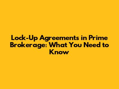 How Lock-Up Agreements Function in Prime Brokerage