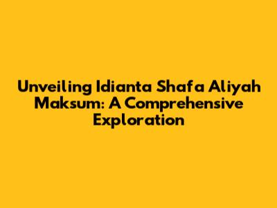 Unveiling Idianta Shafa Aliyah Maksum: A Comprehensive Exploration