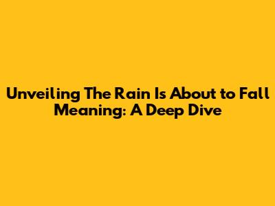 Hey guys! Ever wondered about the deeper meaning behind the phrase "The Rain Is About to Fall"? Well, you're in the right place! We're diving headfirst into the heart of this evocative expression, exploring its nuances and interpretations. This isn't just about literal rain; it's about so much more. This phrase is packed with symbolism and can be used in various contexts, from the everyday to the highly metaphorical. We'll unpack its layers, looking at how it's used in different situations and what messages it conveys. Ready to get started? Let's jump in and explore what this phrase really means and how it can be understood in different situations. Understanding the context surrounding this phrase is crucial to understanding its real meaning. Whether in a conversation, a song lyric, or a piece of literature, the meaning can shift based on its usage. The phrase is often used to describe an impending sense of change, a feeling that something significant is about to happen. This could be anything from a literal storm to a period of hardship. By analyzing its usage, we'll gain a richer understanding of this impactful phrase. It's really about more than just the weather! It's a way to talk about transition, challenges, and the inevitability of change. So buckle up, because we're about to explore the depths of this fascinating expression.