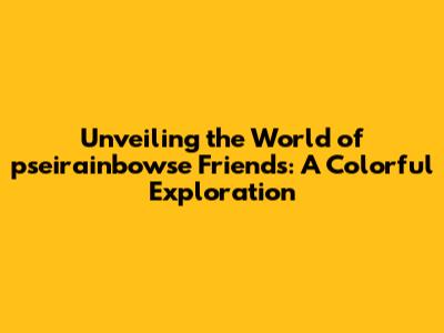 Hey everyone! Buckle up, because we're diving headfirst into the vibrant world of pseirainbowse friends! You might be wondering, "What exactly are pseirainbowse friends?" Well, that's exactly what we're here to find out. This article is your ultimate guide, a deep dive into everything you need to know about these fascinating entities. We'll explore their origins, their characteristics, and why they're capturing the imagination of so many people. Get ready for a journey filled with color, wonder, and a whole lot of fun. We'll uncover the secrets behind this mysterious group and figure out what makes them so special. So, grab your favorite snacks, settle in, and let's embark on this exciting adventure together. We're going to break down every aspect, ensuring you leave with a complete understanding of the topic at hand. It's going to be a blast, and I'm super excited to share everything I've learned with you all. This is more than just an article; it's an invitation to explore a world that is as unique as it is captivating. We'll also examine the cultural impact and their increasing popularity in the digital landscape. Let's start with a thorough overview of this topic. This will serve as a strong foundation for our exploration. Let's get started!